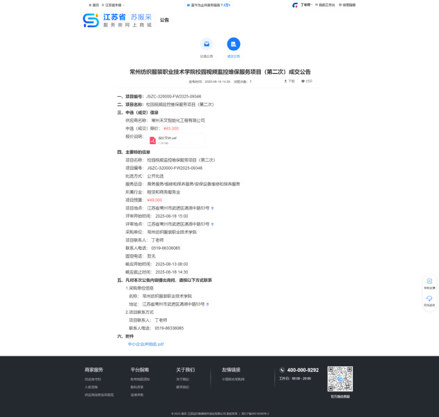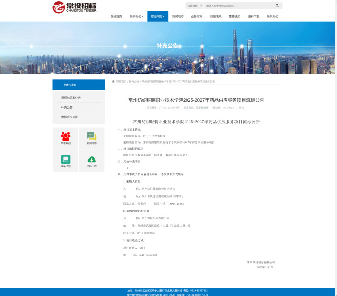 我校辅导员专题培训(素质拓展)项目以询价方式采购,现将结果公告如下:一、项目名称:辅导员专题培训(素质拓展)二、采购编号:CB128072025000018三、公告媒体及日期:2025年8月4日起在常州纺织服装职业技术学院网站上发布采购公告四、确定流标日期:2025年8月12日五、流标理由:实质性响应采购要求的供应商不足三家六、联系方式:联系人:丁老师联系电话:0519-86336065,l3776393553。联系地址:江苏省常州市武进区湖塘镇滆湖中路53号常州纺织服装职业技术学院2025年8月13日