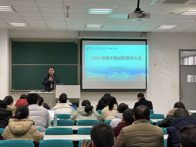 为总结2021年人文学院党政工作的开展情况,切实提升学院综合管理效能,凝心聚力谋划2022年学院工作,夯实“江苏省中国特色高水平高职学校建设”基础,1月6日下午,人文学院全体教职工在2C416会议室召开2021年中层干部述职述廉测评暨期末总结大会,会议由人文学院党总支书记韩兰娟主持,人文学院党政领导、全体教职工参加。会上,韩兰娟首先代表人文学院党总支围绕党建工作的各个方面进行了述职汇报,院长陈辉代表人文学院行政班子对教学、科研、社会服务、师资队伍建设、招生就业管理等方面进行全面梳理总结。随后,五位中层干部依次从德、能、勤、绩、廉五个方面,围绕2021年各自所承担的职责进行了述职述廉,总结一年来所取得的成绩,找出不足与问题,结合双高校建设发展目标提出2022年工作思路。会后,教职工对党政班子及班子成员进行了民主测评。第二阶段,陈辉院长对各单元一年来的工作成绩和奉献精神进行了点评,希望全体教职工继续增强政治意识、大局意识、核心意识、看齐意识,以踔厉奋发,笃行不怠的精神风貌夯实“江苏省中国特色高水平高职学校”建设成果,坚守立德树人使命,强化学院教风、学风建设,以“功成不必在我,功成必定有我”
