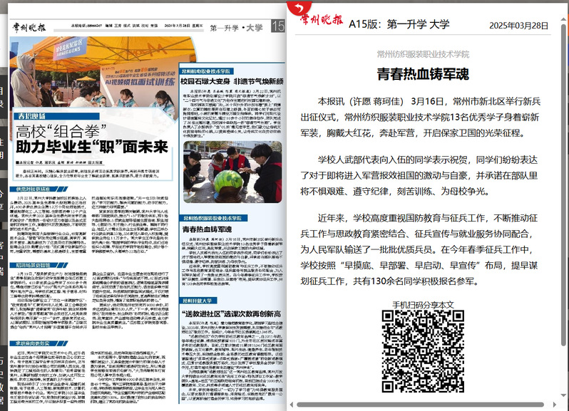 常州晚报|常州纺织服装职业技术学院 青春热血铸军魂
