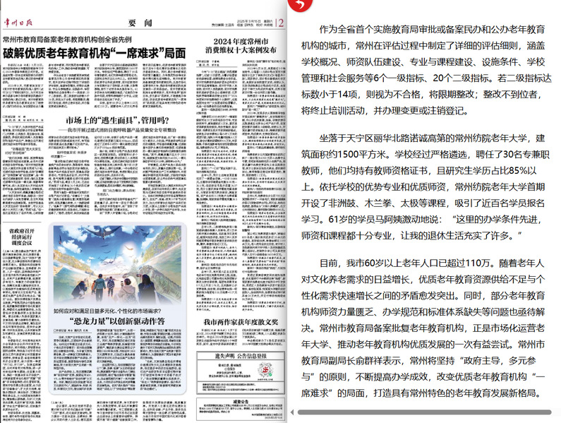 武进日报|常州纺院老年大学暨高校银龄学习中心2025年春季学期班正式开班